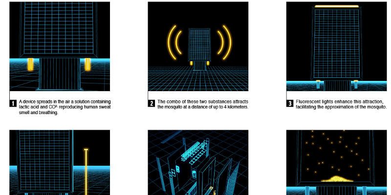 Các bảng quảng cáo được phát triển bởi một cơ quan tiếp thị của Brazil, và tiết ra mùi của carbon dioxide và acid lactic. Đây là những chất có mùi hấp dẫn với muỗi. Các giải pháp bắt chước mồ hôi của con người và hơi thở, mùi có thể mang lại cho muỗi khi ở cách xa lên đến 4km.